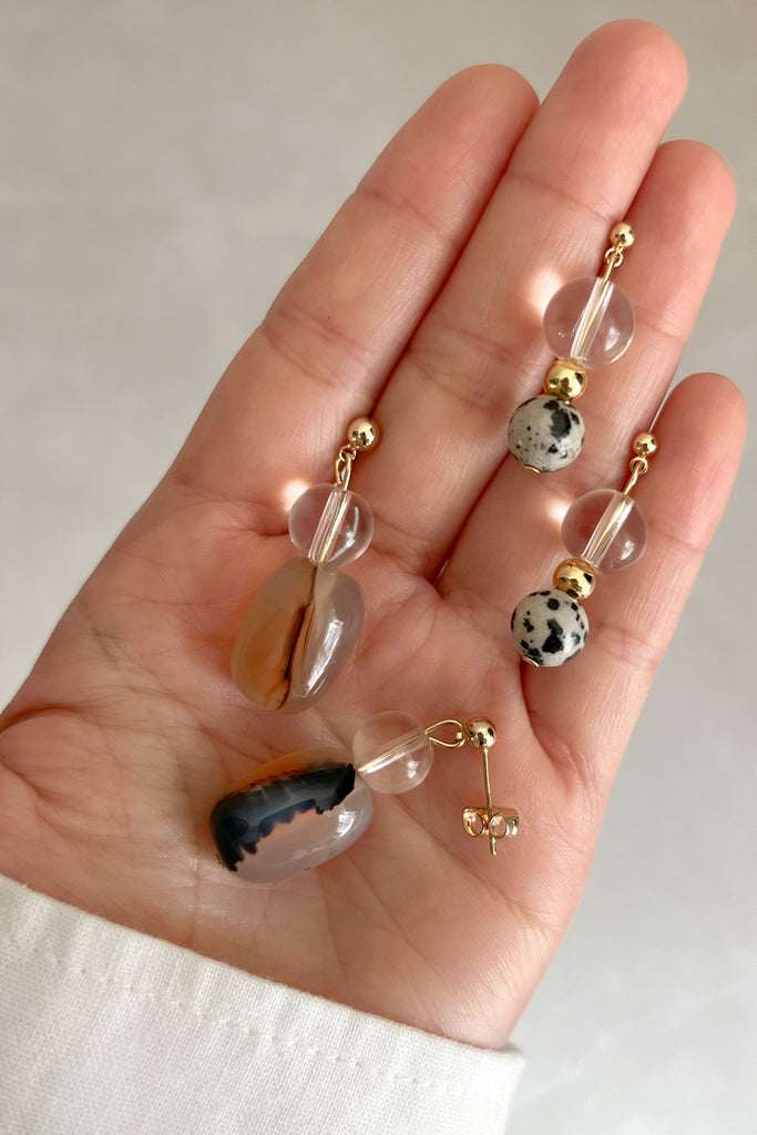 - Semi-precious Dalmatian Jasper stone & glass beads