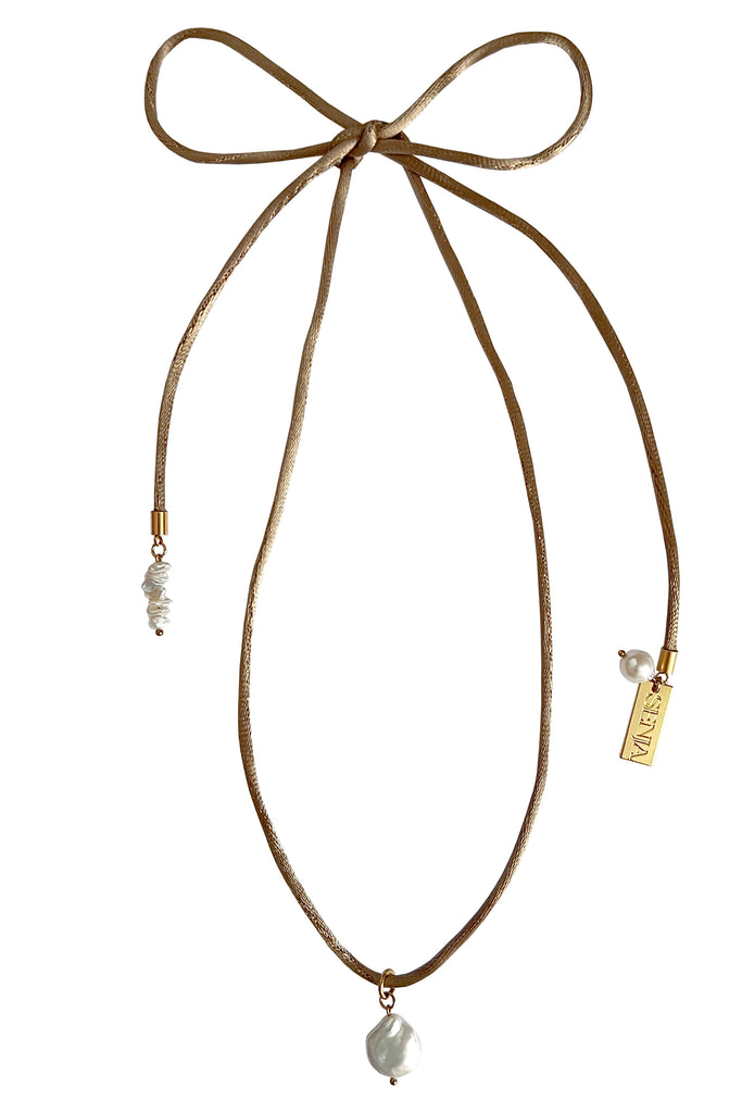 A modern update on the classic pearl necklace designed with organic shaped freshwater pearls suspended from a silky delicate cord. This necklace is great to wear on its own or a layering piece added to any other necklace in the collection.