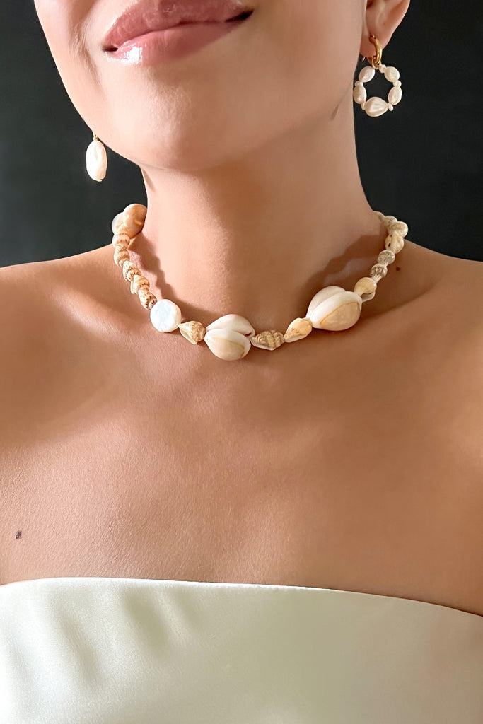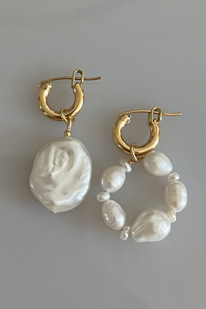 Sleek and contemporary. Adorned with an organic oval-shaped freshwater pearl with mini Keshi pearls charm that gracefully fall from gold hoops. These hoops will be your go-to style, taking you from day to night with ease.