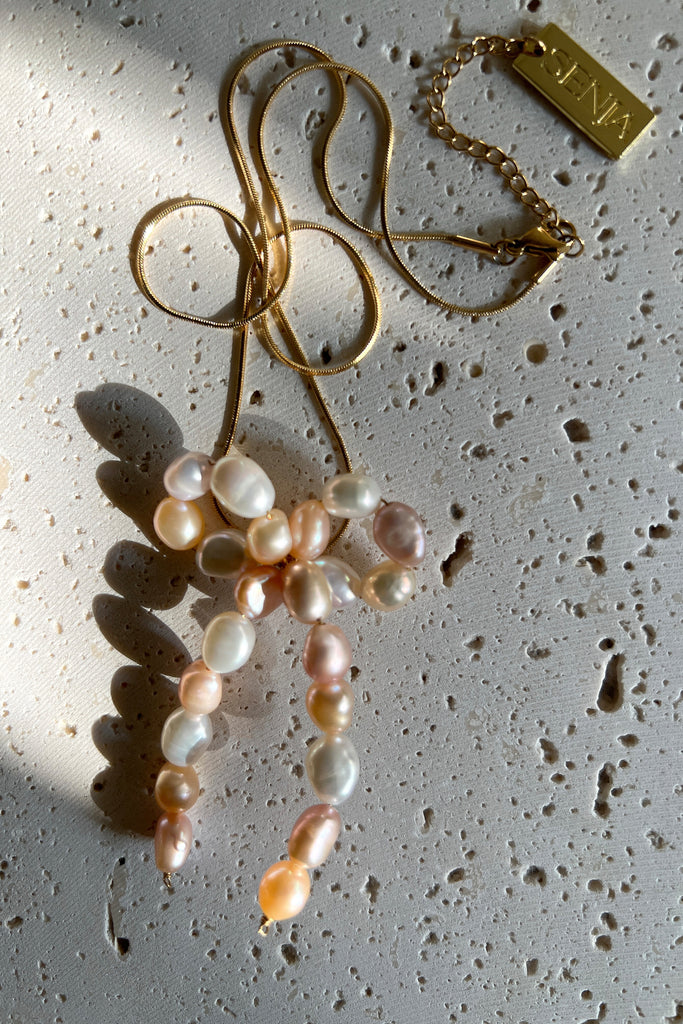 - Ribbon pendant encrusted with a hand-picked organic shaped freshwater Keshi pearls