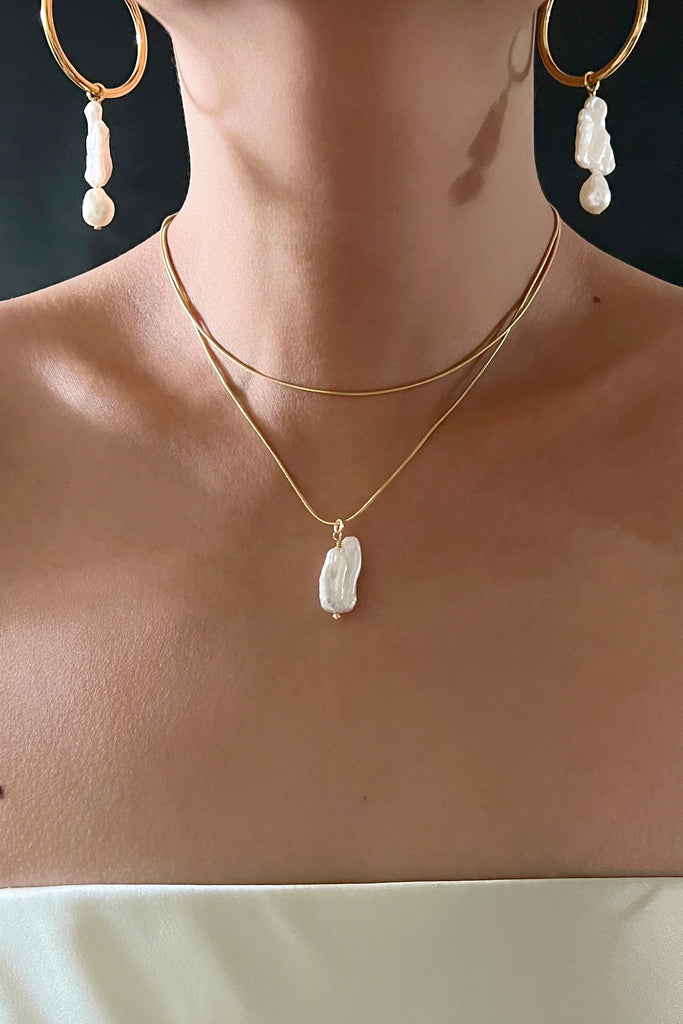 A classic pearl pendant necklace is always in style. The necklace features a single organic-shaped freshwater pearl suspended from a duo-fine chain for any luxe, layered look. This sleek design delicately adds style and creates maximum impact.
