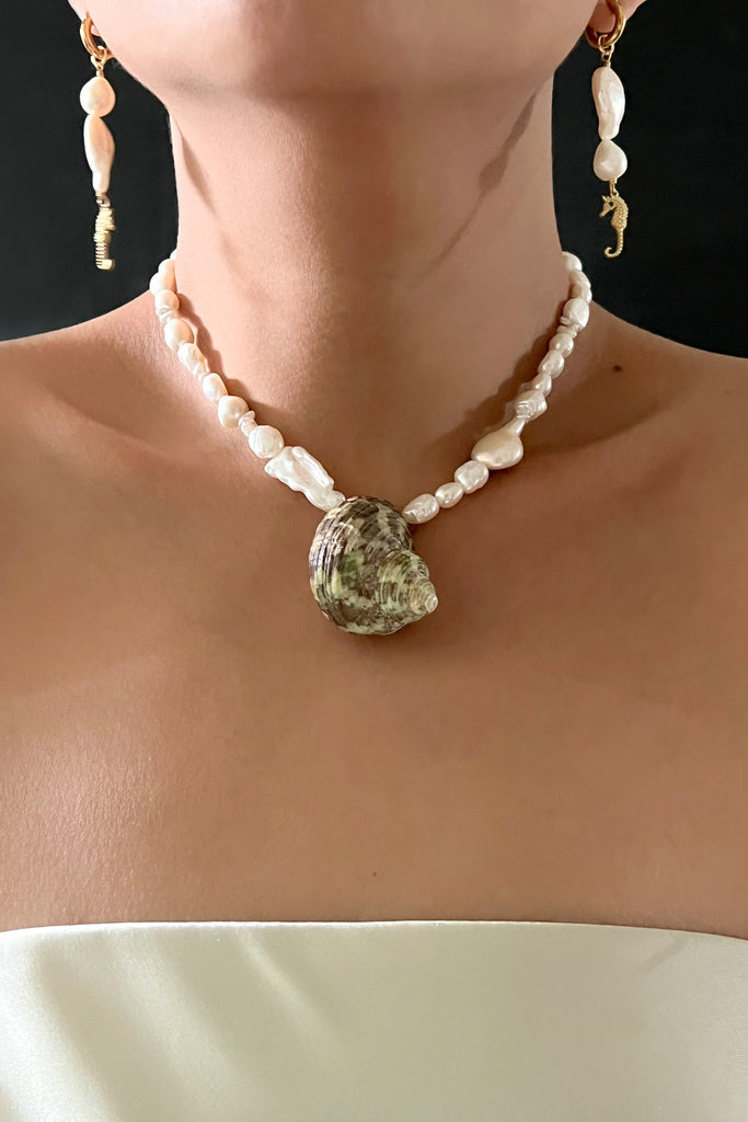 Adorned with an organic teardrop and round-shaped freshwater pearls with seahorse charms. A versatile option that can be worn with or without pearl adornment - slide the dangle off to wear just the simple hoop earring. Style yours alone or with your favourite huggies or mini hoops.